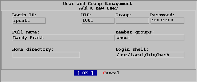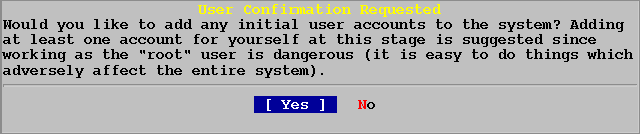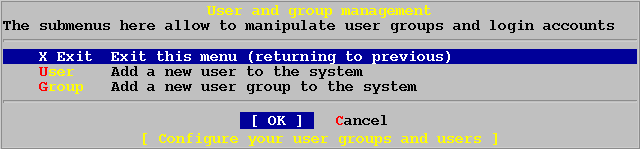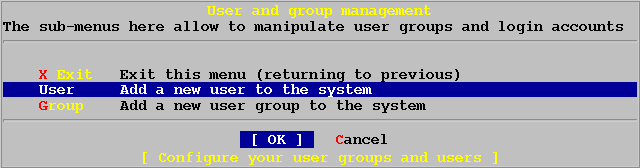 Я хотел как минимум, добавить одного пользователя в систему, выбрав с помощью стрелок "Add User", затем [OK] и нажав [ENTER].