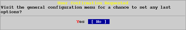 Выбирите [No] и нажмите [ENTER] для возврата в Главное Меню Установки