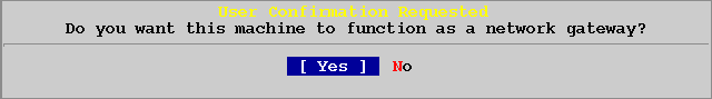 Я ответил [Yes] потому что эта машина будет действующим гейтвеем для локальной сети и форвардировать пакеты между другими машинами локальной сети.