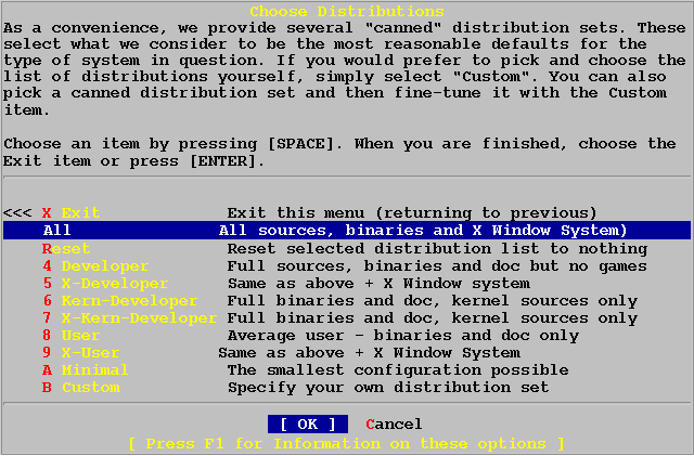 Чтобы выбрать "All" используйте клавиши стрелок для выбора элемента и клавишу space bar для выбора значения. После произведенного выбора компонент, нажмите [ENTER] чтобы выйти из данного меню.