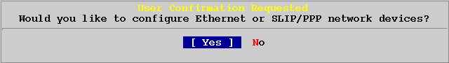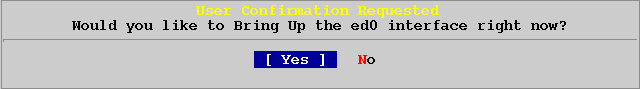 Выбор [Yes] активизирует сетевой интерфейс вашей машины и оставит его в рабочем состоянии после выхода из sysinstall.