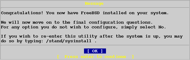 | Установка FreeBSD по FTP с FTP Сервера | Завершение Установки |
