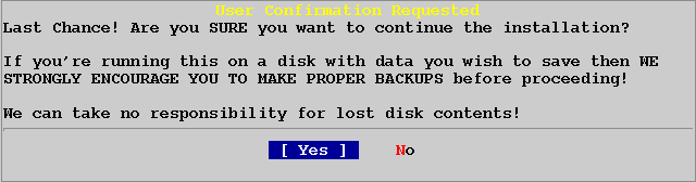 Теперь установка может быть продолжена. На этом этапе у вас остался последний шанс когда вы можете прервать установку до произведения операций с вашим жестки диском.