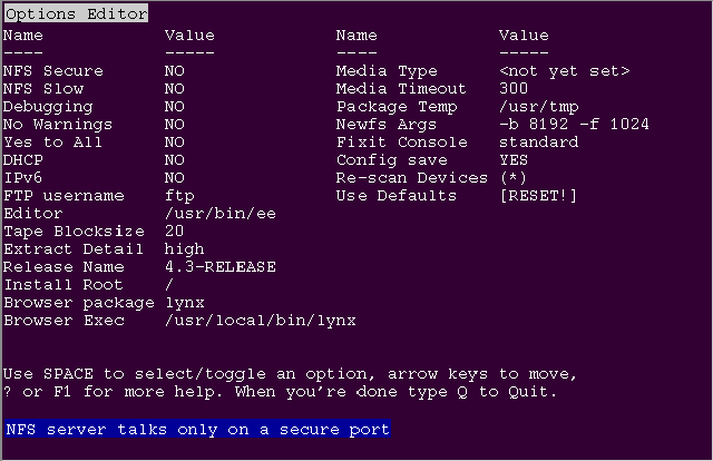 Нажмите F1 для того, чтобы прочитать раздел помощи по работе с различными опциями.
