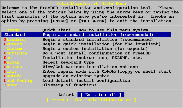 Если вам необходимо произвести изменения для устройств в UserConfig, достаточно просто выйти из программы sysinstall и начать все сначала. Это полезно для более твердого ознакомления с данным процессом.
