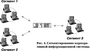 Корпоративные информационные системы оказываются разнородными еще в одном важном отношении — в разных частях этих систем хранятся и обрабатываются данные разной степени важности и секретности. Целесообразно в таком случае провести перегородки или, как говорят, внутренние политические границы, разделяющие сегменты разного характера ( Рис. 4 ).
